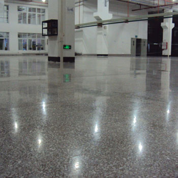 水磨石地面固化(硬化)地坪系统是针对新旧水磨石地面通过侵泡巴固混凝土密封固化剂与水磨石地面中的水泥成份所含的半化水泥、游离钙、氧化硅物质经过一系列化学反应,从而得到一个无尘、致密、高耐磨并且具有钢铁般硬度的水磨石地面二通过专用机械进行不同程度的粗磨、细磨、精磨、抛光等一系列工艺施工,从而得到一个美观、无尘、致密、高耐磨并且具有大理石般光泽的水磨石地面。